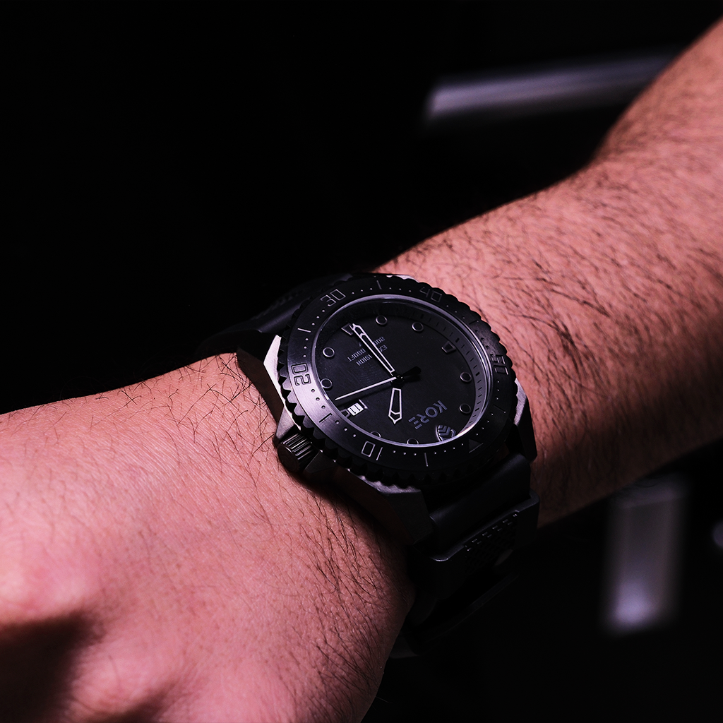 - Features: Stealth low luminance markings, date window & rotating bezel?