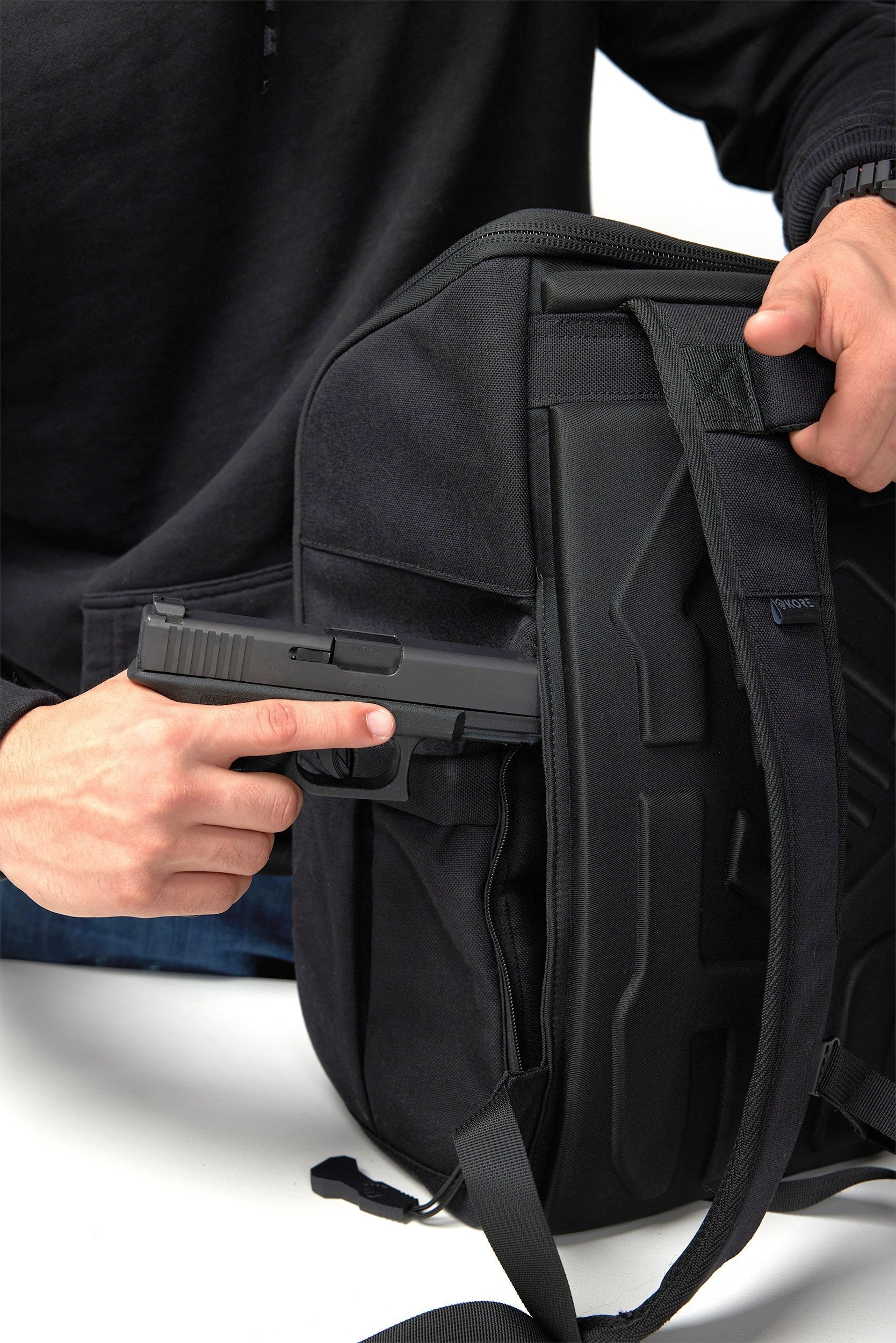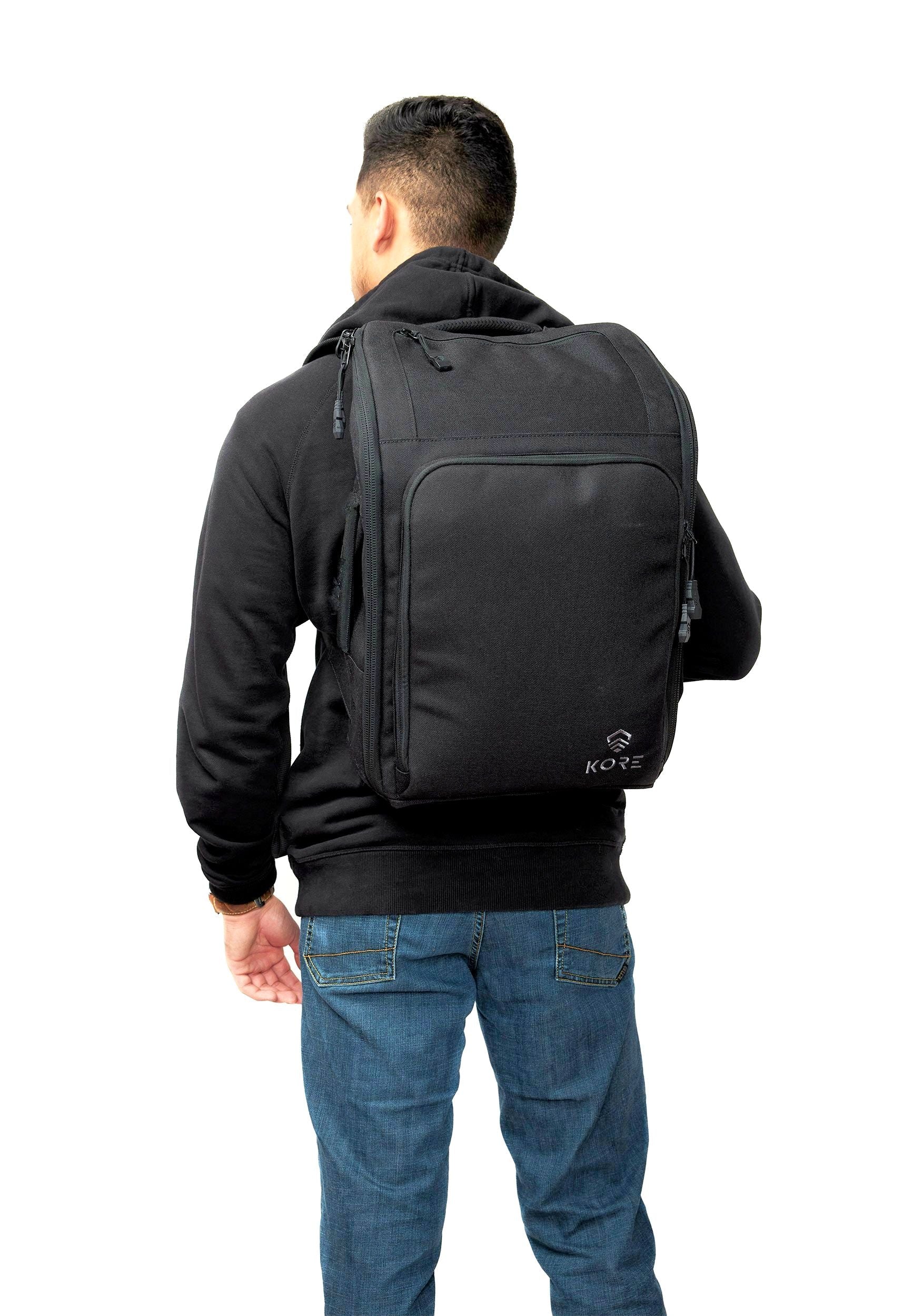 Discover our new KORE Urban Concealed Carry (CC) Backpack, the perfect gray man companion for the modern city dweller. Hidden inside this stylish, comfortable pack?is our patented quick-deploy firearm compartment, body armor (optional) and go-dark (anti-tracking) pouch, so you'll feel safe and ready for almost anything that comes your way. Includes?plenty of space for all your?everyday carry (EDC)?necessities including clothing, toiletries, business tools and personal items. Ready to hit the streets? Urban CC's got your back!?
