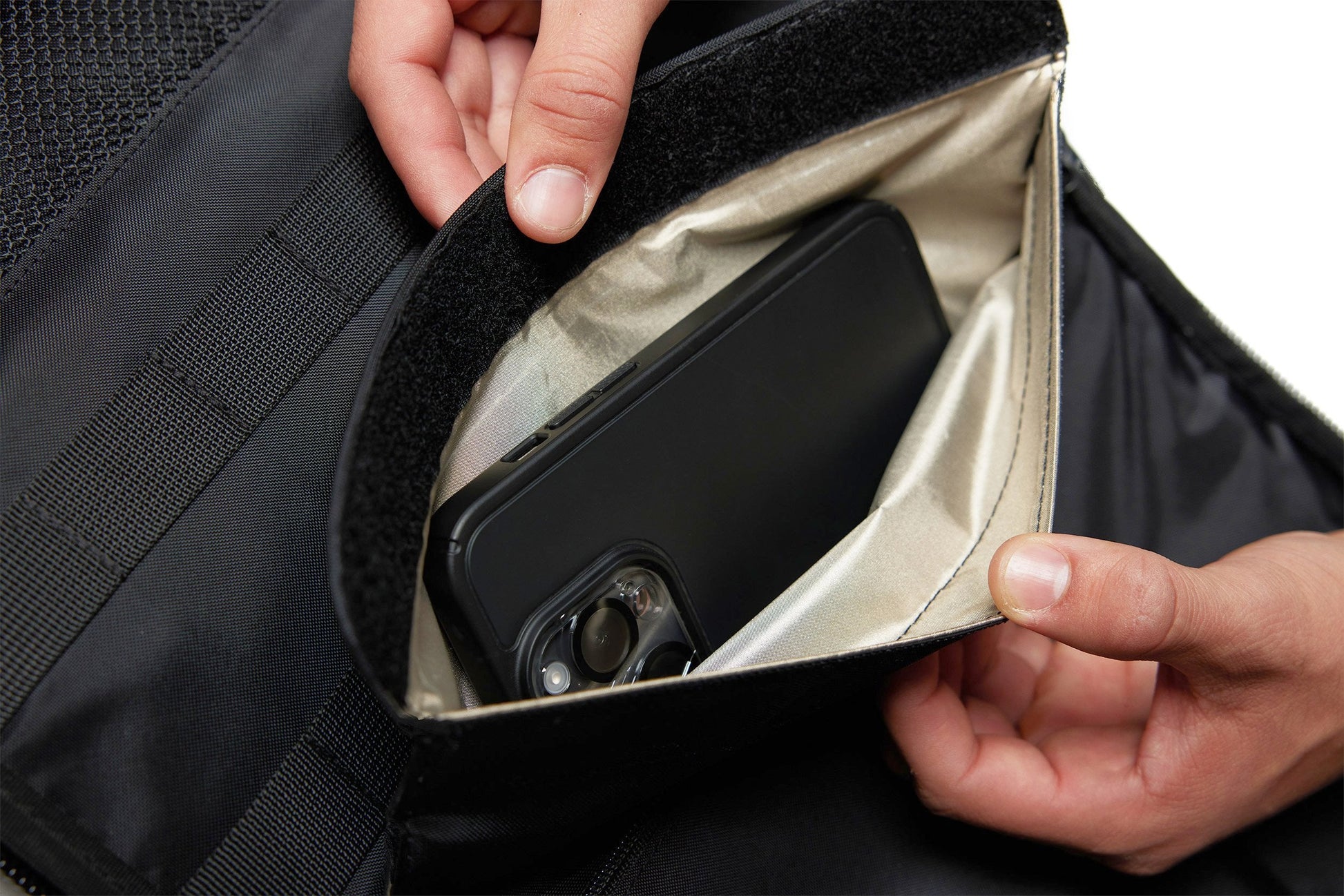 3. Go-Dark Pouch?(included)?protects your phone, and other electronics from?location tracking, hacking, and damage by blocking all in and outgoing EMF?signals. Simply place it in the pouch and go!?